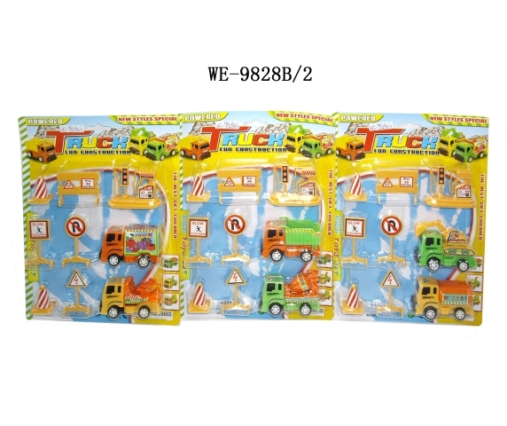 Машинки в наборе с инерционным механизмом. Нужно только откатить их назад и автоматически они поедут вперед, успешно преодолевая препятствия. В ассортименте 6 видов. В наборе 2 машинки и дорожные знаки. Материал: нетоксичный пластик, металл. Упаковка: блистер. Игрушка для детей от 2 до 6 лет